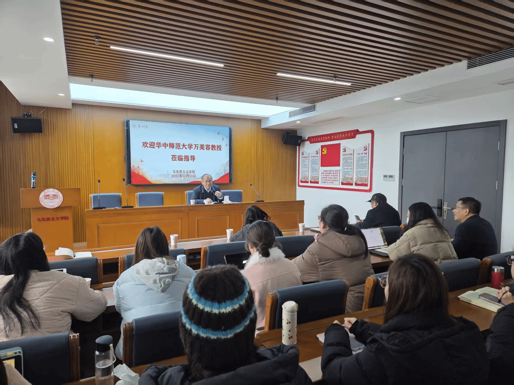 为深入推进马克思主义理论团队建设,进一步提升硕士公司产品质量,12月13日上午,公司特邀国务院学位委员会学科评议组成员、华中师范大学伟德国际victor1946原经理、博士生导师万美容教授来院,就团队建设与高级别项目申报工作进行指导交流。座谈会由经理陈明教授主持,副经理王竹苗、二级教授贺汉魂、数学与统计公司党委书记阮东彪以及研究生代表共40余人参加。