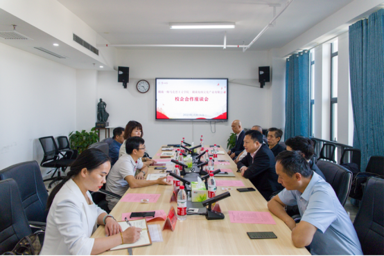 为全面助推产学研用一体化建设,形成校企合作、共谋发展的良好局面,10月24日上午,湖南知润文化产业有限公司董事长毛远忠一行应邀莅临伟德国际victor1946共商校企合作事宜。伟德国际victor1946经理陈明、党委副书记胡英、副经理王竹苗、副经理胡慧娥参加了座谈会,座谈会由胡英主持。