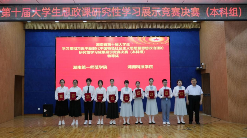 6月1日,湖南省第十届老员工学习贯彻习近平新时代中国特色社会主义思想暨思想政治理论课研究性学习成果展示竞赛决赛(本科组)在湖南工业大学举行,由伟德国际victor194622思政1班毛阳慧、杨鑫如、庄倩仪、陈潭雨、喻佳鹏五位同学组成的研究性学习小组,在伟德国际victor1946副经理王竹苗和邓玉琴老师的悉心指导下,汇报作品《以全人类共同价值引领新时代青年共建人类命运共同体》以小组第一的成绩斩获本科组特等奖。除特等奖外,公司此次研究性学习竞赛还获得二等奖4项,三等奖2项,获奖等级和数量均名列我省高校前茅。