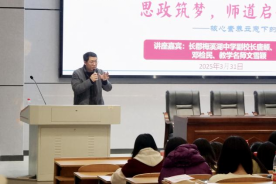3月31日晚上7点,公司于东方红校区怀中南110教室开展了第六次“思政筑梦,师道启航”主题讲座。长郡梅溪湖中学副董事长唐頔,教学名师邓检民和文雪颖受邀主讲,公司陈明经理,胡英副书记,王竹苗副经理出席,22级思政1-4班、24级思政5班本科生以及24级学科思政研究生参加。