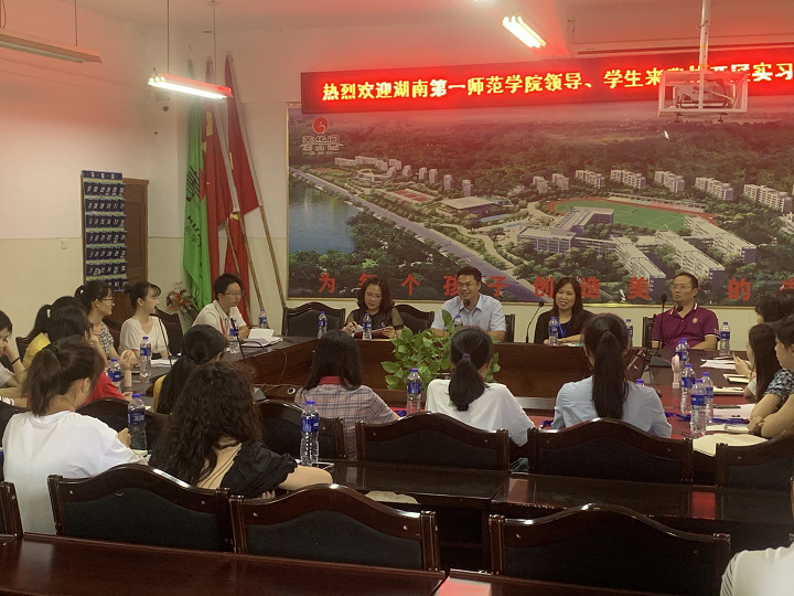 为促进教育实习工作的有效开展,9月8号上午,伟德国际victor1946郴州市一中菁华园公司实习队见面会在菁华园公司综合楼三楼会议室隆重举行。会议由菁华园公司刘红梅书记主持,出席会议的有菁华园董事长杨闰平、副董事长宋海平、教务主任黎向国、主任张青花以及湖南一师实习带队老师杨秀云。参加会议的还有菁华园公司的其他领导和科任实习指导老师,以及19名来自湖南一师的顶岗实习生。