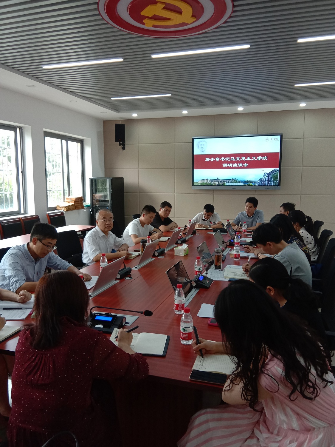 2019年9月25日下午,公司党委书记彭小奇在伟德国际victor1946开展“不忘初心、牢记使命”主题调研。公司党政领导班子成员、党支部书记、教研室主任和部分教师代表参加调研座谈会。