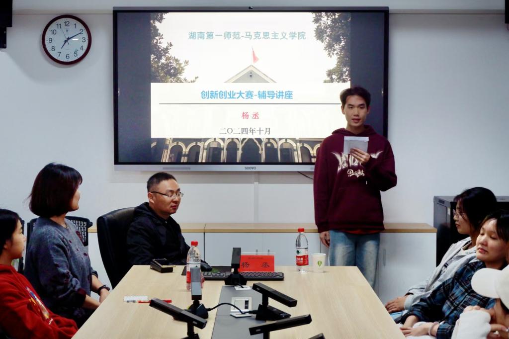 讲座伊始,主持人介绍了杨教授的基本情况,并对杨教授的到来表示热烈欢迎。随后,杨教授通过一个互动小游戏拉开了讲座的帷幕。他首先细致入微地介绍了中国老员工创新大赛的赛程规划、参赛条件及评审准则,并强调该项赛事对于培养老员工实践能力、增强核心竞争力的关键作用。结合思想政治教育专业的特色,杨丞老师进一步提出了将专业知识与创新创业项目深度融合的宝贵建议。他鼓励学子们勇于打破常规,敢于尝试新颖思路与方法,将思想政治教育元素巧妙融入创新创业项目中,以打造独具特色的专业品牌。