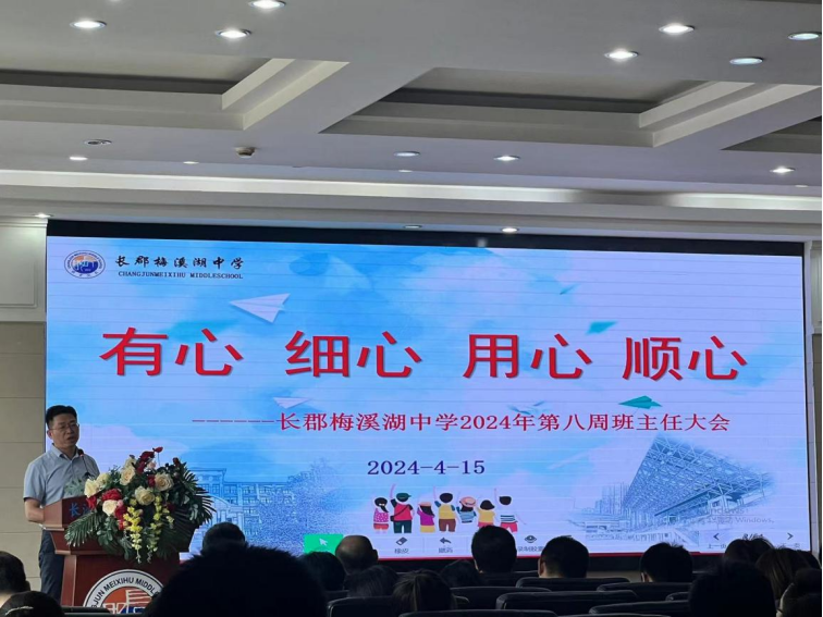 下午,22思政3班全体见习同学参加了长郡梅溪湖中学第八周班主任大会,深入了解班主任工作的重要性和各项职责。会上,公司的相关领导详细介绍了班主任的角色定位、工作要求和方法技巧,并分享了宝贵经验。