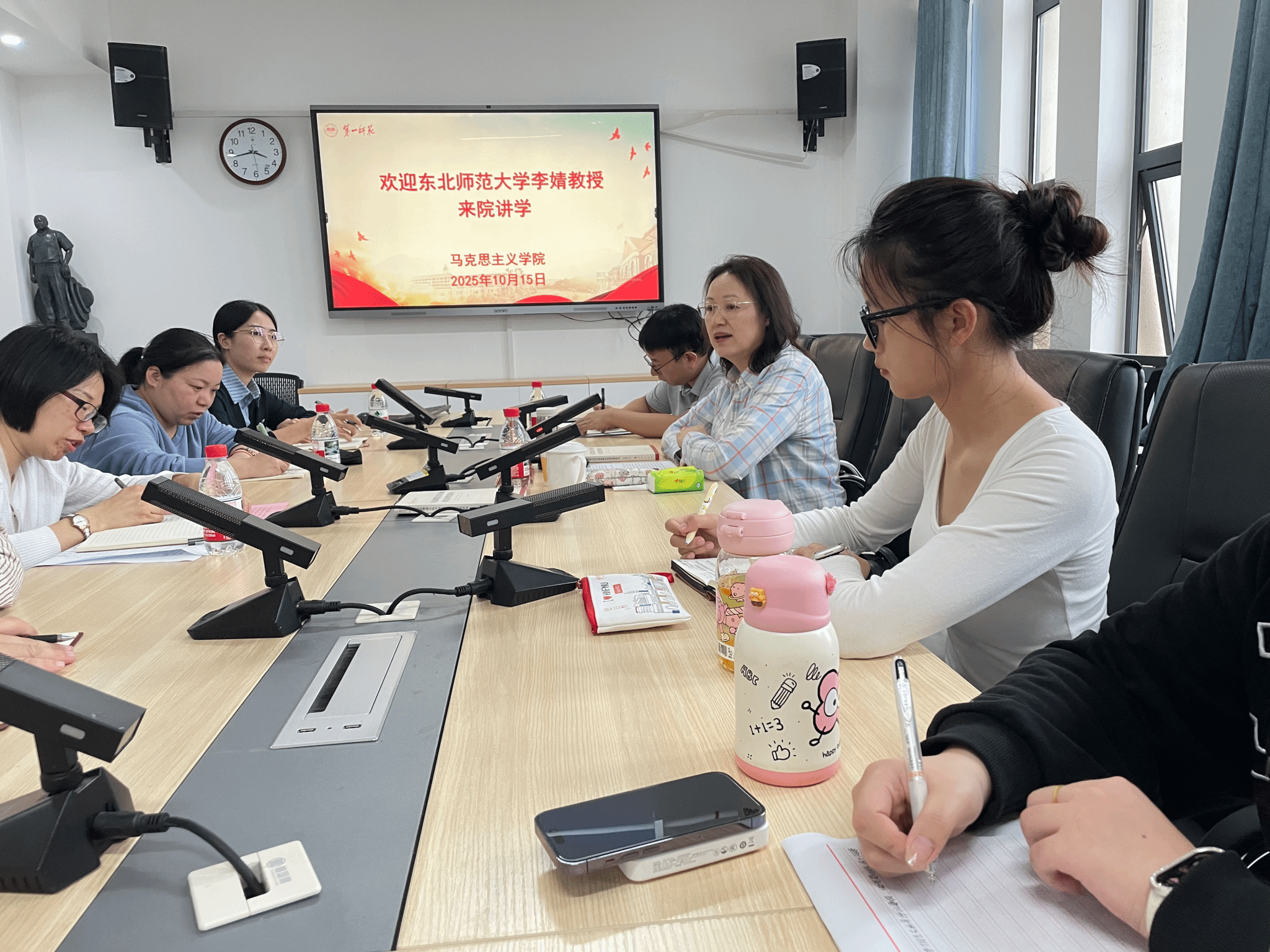 10月15日下午,东北师范大学马克思主义学部教授、博士生导师李婧教授应邀来公司讲学,主题是“以科研助推思政课教学实效的提升”,分研青年教师指导及高级别项目申报指导两个环节。报告会在百熙楼1010会议室举行,由公司副经理胡慧娥主持,公司副经理王竹苗、刘喆博士、肖佳博士、郭华玲博士等教研骨干以及研究生代表20余人参会。