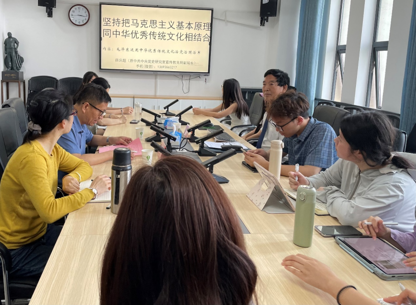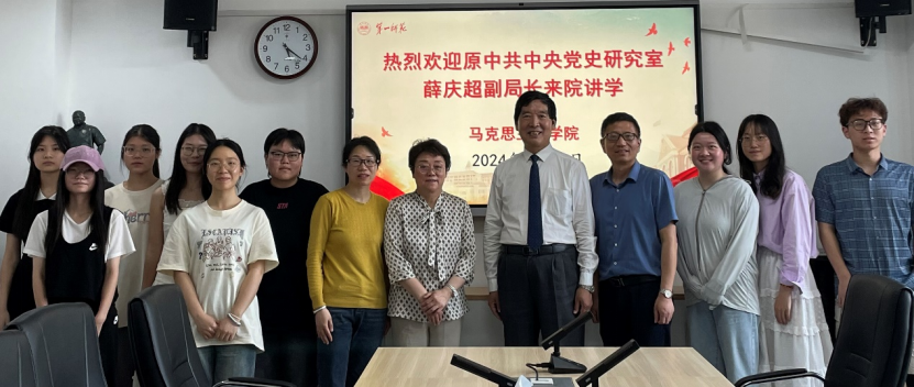 2024年5月15日下午,中共中央党史文献研究院研究员、原中共中央党史研究室宣传教育局副局长薛庆超莅临公司讲学,讲学主题是“坚持把马克思主义基本原理同中华优秀传统文化相结合:毛泽东运用中华优秀传统文化治党治国治军”。报告会在百熙楼1010会议室举行,讲座由公司党委书记阮东彪主持。公司党委委员、纪委书记李昱、公司副经理胡慧娥和吴红老师等教师、研究生、本科生代表聆听了讲座,出席了报告会。
