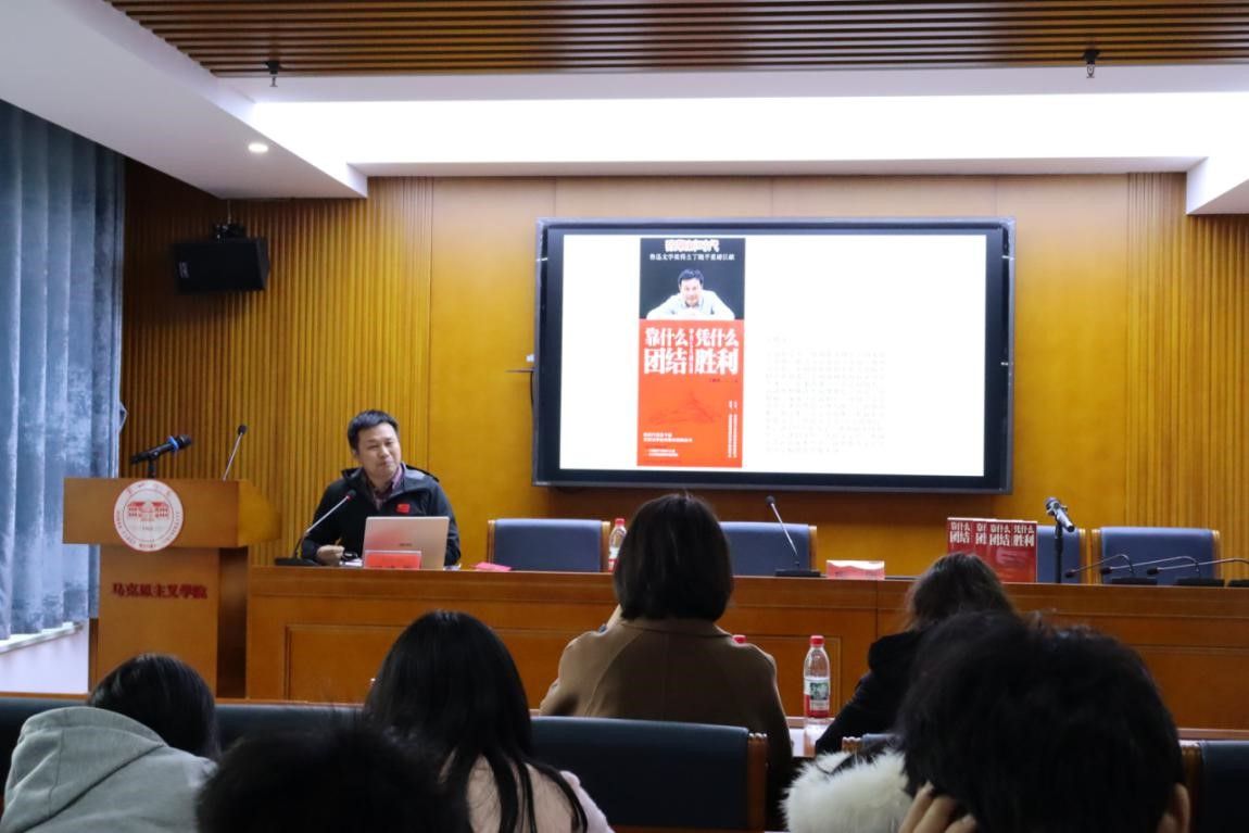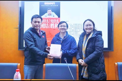 11 月 18 日下午,伟德国际victor1946在百熙楼1013报告厅成功举办“思行先锋”讲坛。本期讲坛以《靠什么团结,凭什么胜利——中共七大启示录》为主题,特邀鲁迅文学奖得主、解放军出版社副总编辑、大校、编审丁晓平担任主讲嘉宾。伟德国际victor1946陈明经理主持活动。湖南人民出版社编校中心主任吴向红、公司党委副书记胡英、分团委书记刘艳霓以及伟德国际victor1946本科生约80人参加了本期讲座。