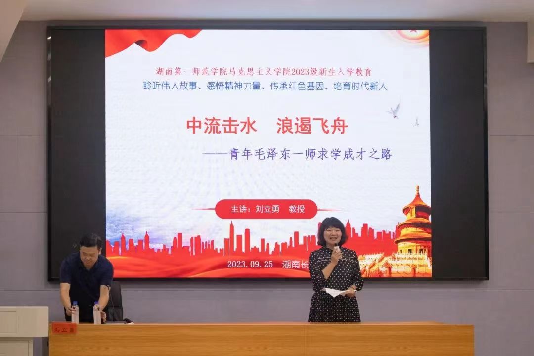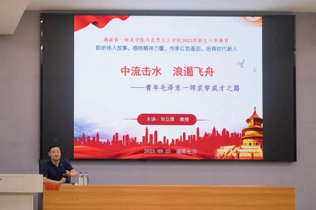 9月25日晚,公司特色活动“思行先锋”论坛讲座暨2023级新生入学教育活动于玉衡南101教室顺利举行,此次讲座特邀公司计算机公司党委书记刘立勇教授主讲,讲座主题为《中流击水 浪遏飞舟——青年毛泽东一师求学成才之路》,公司党委副书记胡英、学工办主任于澎、分团委书记刘艳霓以及全体23级新生参加了此次精彩讲座。