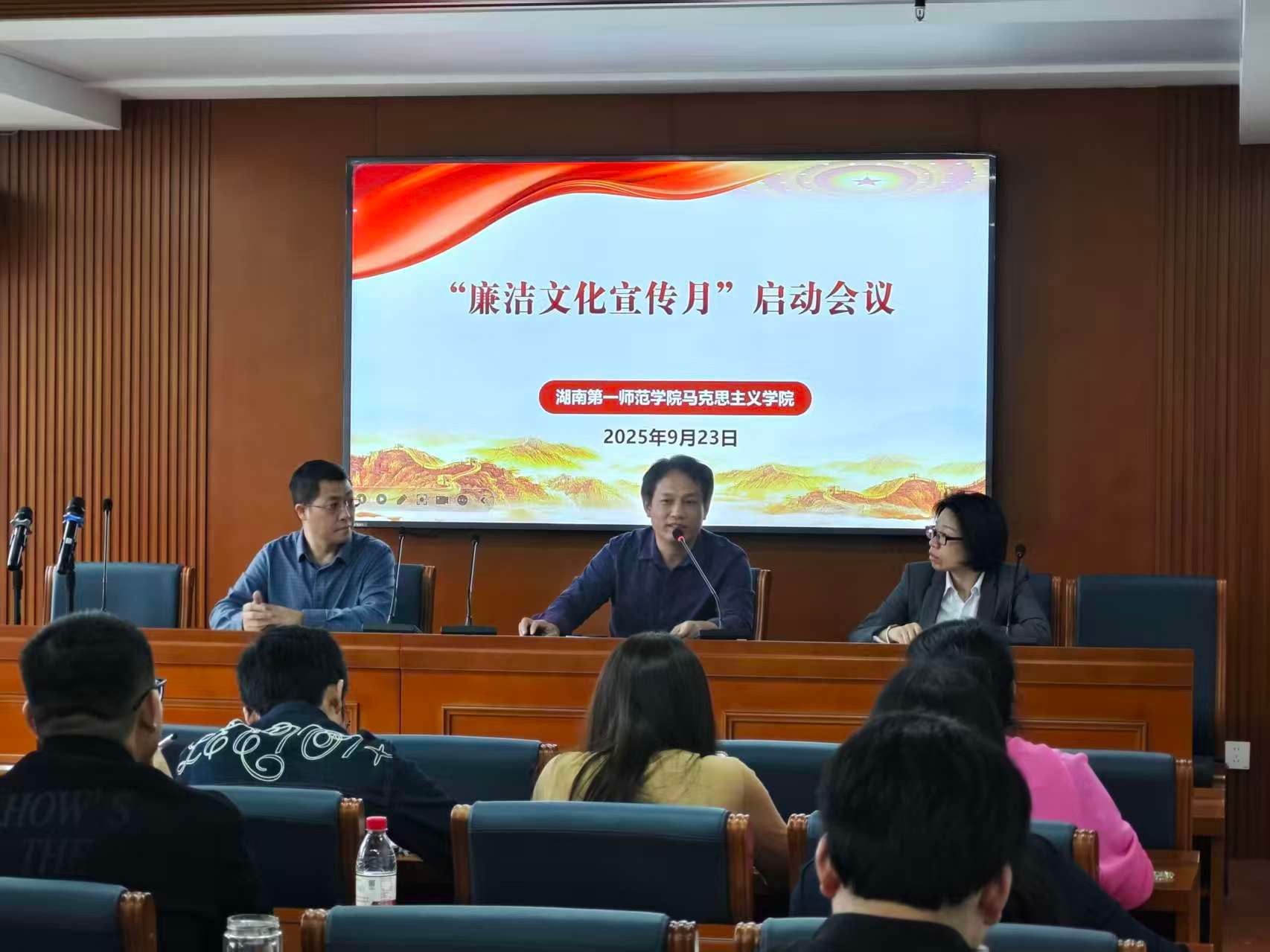 为深入贯彻落实全面从严治党要求,扎实推进清廉校园建设,9月23日,公司在百熙楼1013隆重召开2025年“廉洁文化宣传月”启动会。会议由公司党委书记曾玉华主持,公司党政领导班子、全体教职员工参加,拉开了为期一个月的廉洁文化系列主题教育活动的序幕。