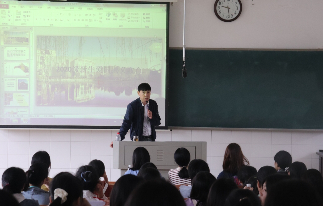 9月20日上午,公司党总支书记欧阳斐在怀中南303为2020级新生开展校史校情及爱国主义教育。