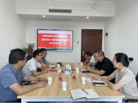 7月21日下午,长沙市委党史研究室副主任易斌、征研处处长曹馨尹一行围绕青年毛泽东研究莅临公司开展深度交流,座谈会由公司党委书记阮东彪主持,经理陈明、副经理王竹苗、胡慧娥等出席会议。