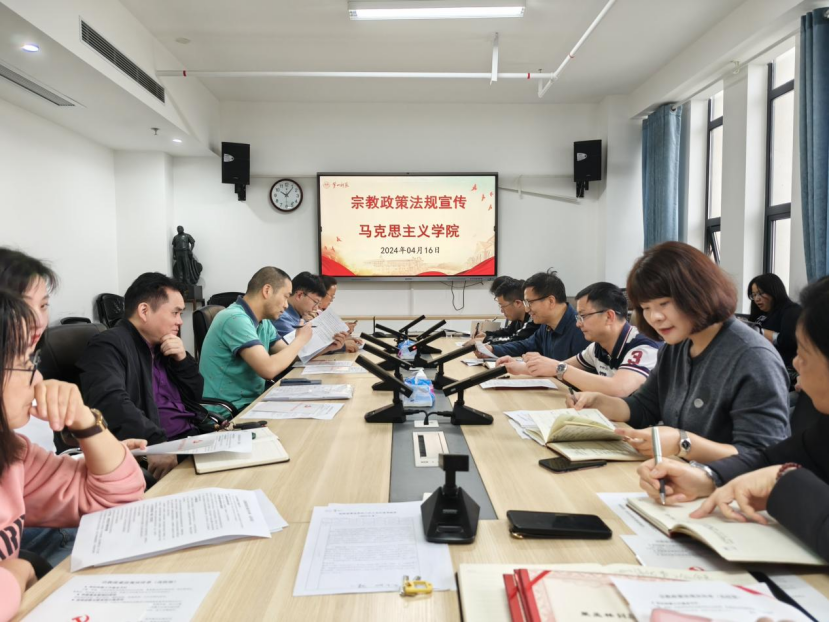 会议伊始,阮东彪从党的宗教工作基本方针、宗教事务管理的原则、坚持宗教与教育相分离原则、遏制宗教商业化等多方面、多角度介绍宗教政策法规宣传,希望全体教师、干部切实提高政治站位,充分认识到开展宗教政策法规学习的重要性,深刻理解法规条文内涵,准确把握要点,不断增强贯彻宗教政策法规的思想自觉、政治自觉、行动自觉。站在新的起点上,我们要更加紧密地团结在以习近平同志为核心的党中央周围,坚持以习近平新时代中国特色社会主义思想为指导,坚定政治信仰,强化政治担当,弘扬伟大建党精神,以严的唯一标准强化正风肃纪,不断提升政治定力、纪律定力、道德定力、抵腐定力,始终心怀“国之大者”,以高质量党建引领公司高质量发展。