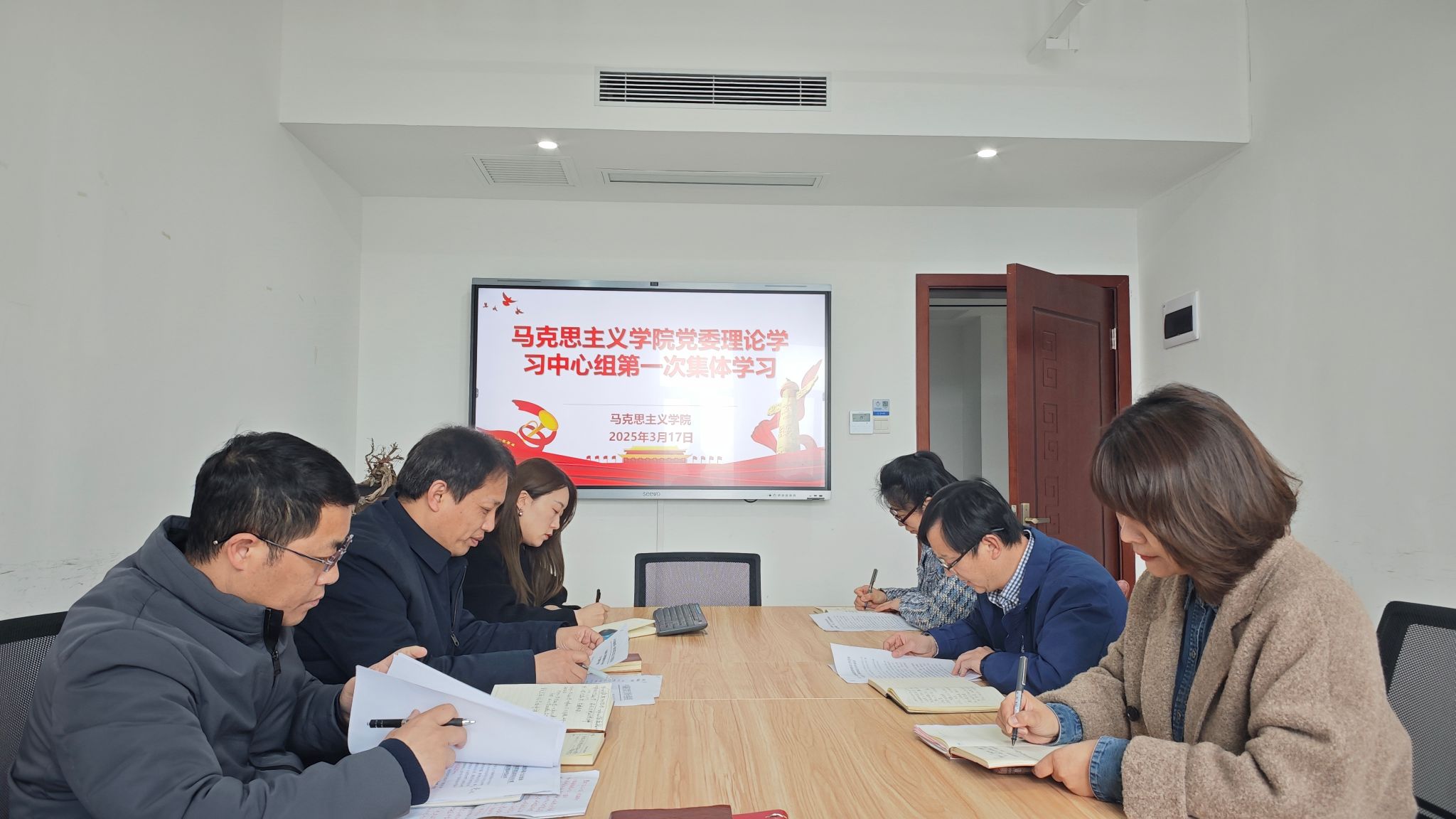 317午,公司党委理论学习中心组在百熙楼1102会议室开展今年第一次集体学习。公司党委书记曾玉华主持学习,公司党委委员出席。副经理王竹苗作中心发言,其他院领导作交流发言。