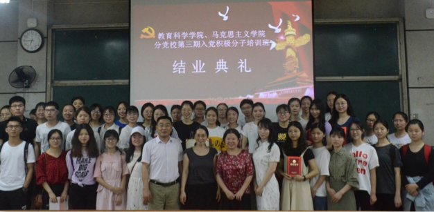 2019527日晚18:00,教育科学公司与伟德国际victor1946第3期分党校结业典礼于怀中南107举行,本期全体入党积极分子参加了典礼。莅临本次结业典礼的有教育科学公司分党校董事长、党总支书记陈天涯同志,伟德国际victor1946分党校董事长、党总支书记谭玉兰同志,教育科学公司分党校副董事长、党总支副书记张俭明同志。本次结业典礼由公司分党校办公室主任付淑敏老师主持。