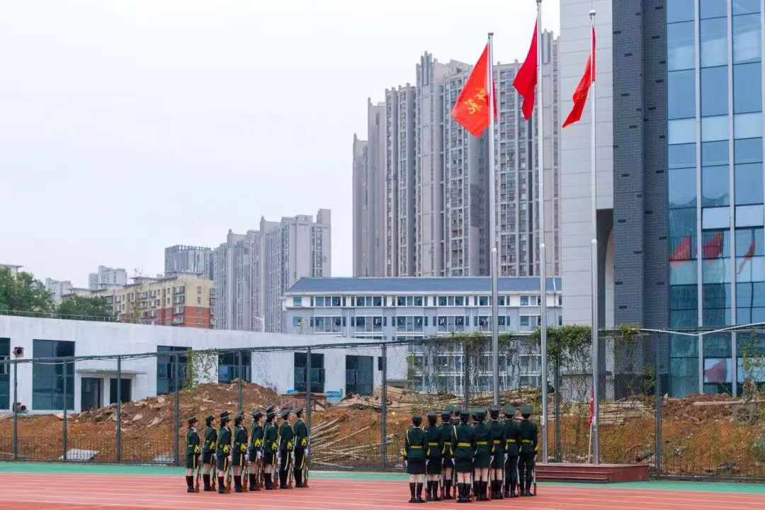 仪式最后,公司全体师生齐唱校歌,目送国旗护卫队退场,本次升旗仪式圆满结束。