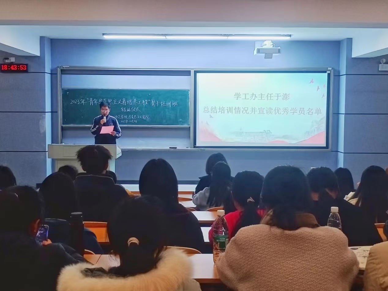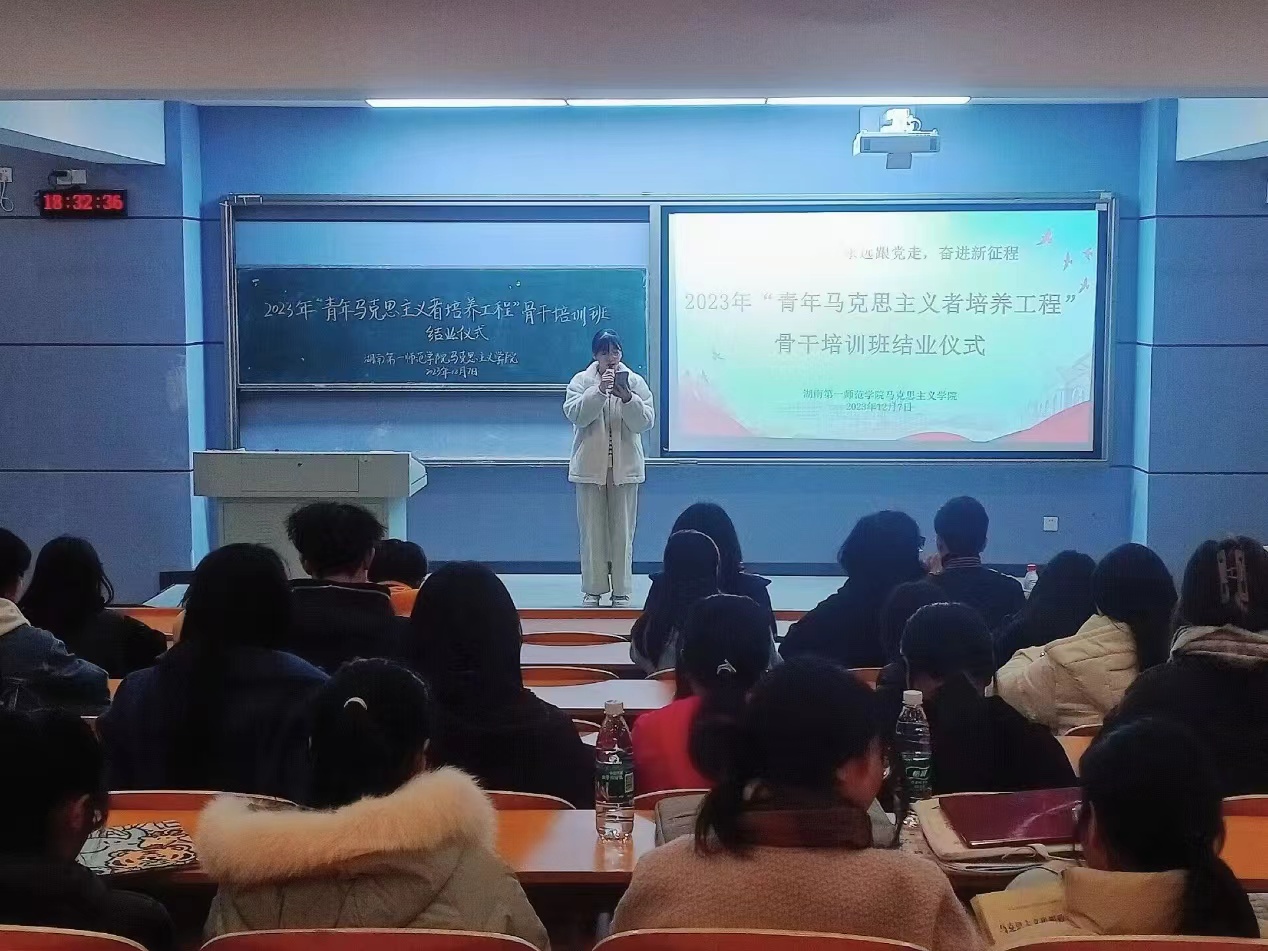 12月7日晚,伟德国际victor1946在润寰南101教室举行2023年“青年马克思主义者培养工程”骨干培训班结业仪式,公司党委副书记胡英、学工办主任于澎出席本次结业仪式,仪式由杨萌同学主持,全体青马学员参与仪式。
