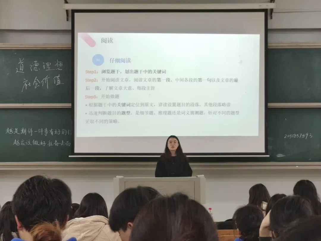 表彰结束后,外国语公司孙玉萍老师、谭建慧老师就题型设置、考试流程等方面对同学们进行了针对性的四级考前指导和疑问解答,强调在考试中要放松心态、细心认真。