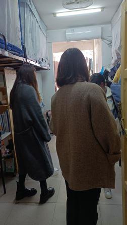 3月7日15:15,公司党委副书记胡英带领辅导员刘艳霓检查了11栋所有寝室门贴,对不合格者登记,并反馈给宿管部;走访2018级、2019级、2020级、2021级寝室,对内务整理提出要求,提醒寝室每天要开窗通风,非必要不要前往人口密集、人员混杂、空气污染的场所;保持健康的生活习惯,加强体育锻炼;向同学们强调注意用电安全,及时注意插座附近墙体是否有渗水现象,以免造成意外。