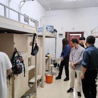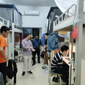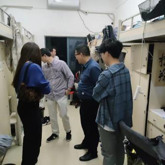 3月14日晚上,公司党委书记阮东彪、经理陈明带领辅导员刘艳霓先后走访了15、16栋男生寝室和11栋女生寝室,了解毕业生考研考编情况,动员同学们积极参加校园招聘。提醒同学们关注疫情动态,寝室要多通风,保持干净整洁的卫生状态,强调所有同学非必要不外出,从自身做起,共同筑牢疫情防线。