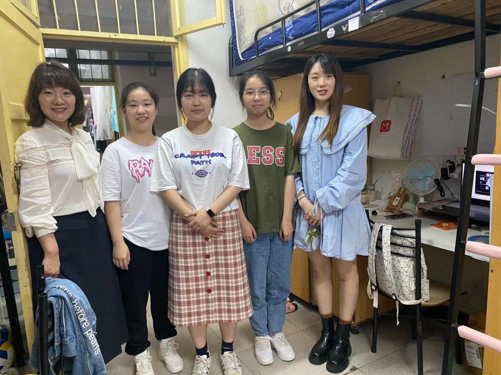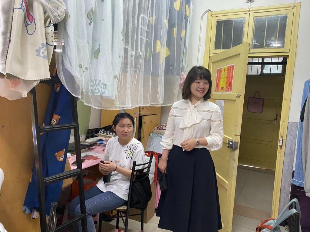 5月25日下午,公司党委副书记胡英带领学工办刘艳霓老师到11栋女生宿舍看望同学。针对寝室卫生进行了细致检查,督促同学们按时通风,保持寝室整洁干净;叮嘱同学们期末临近,要制定合理的复习计划,提高学习效率,做好充足准备备考四六级和期末考试。