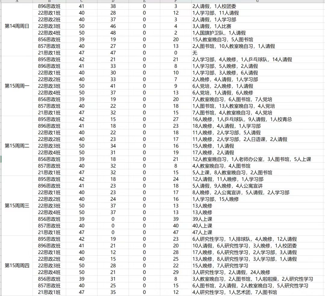 第十五周上课检查情况: