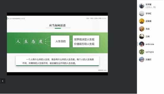 李彩虹展示了教材第二专题《领悟人生真谛 把握人生方向》第二节《树立正确的人生观》、孙中民展示了第三节《创造有意义的人生》的内容。两位老师围绕教学任务、重难点突破、教学方法进行了说课和课程内容展示,在教学展示中,两位老师结合教育部统一的教案,穿插时政热点,及时融入党的二十届三中全会精神和全国教育大会精神。教研室成员围绕授课内容开展了进一步的交流与研讨。这是本学期教研室举行的第三次集体备课活动,大家根据“两性一度”要求,通过集体备课的方式,不断提升教学水平,并取得了一定的效果。(一审:王竹苗;二审:陈明;三审:阮东彪)